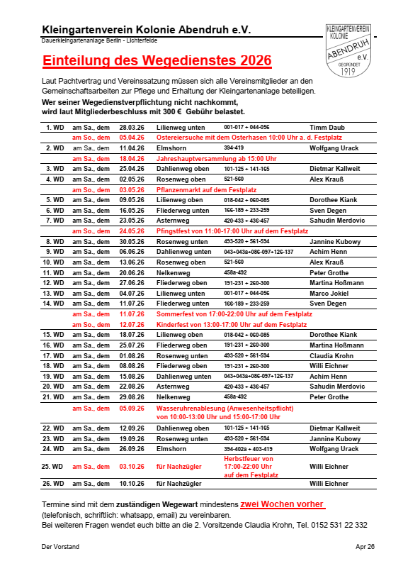 Der Vergnügungsausschuss und der Vorstand danken allen Helfern und Spendern für die gelungenen Feste in unserer Kolonie in diesem Jahr.